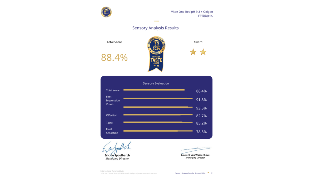 Vitae One® italok nemesítő folyamata a többszörös szűrésnél, tisztításnál, és UV-kezelésnél kezdődik, ezáltal eléri a 99,9% víz tisztaságot. Szabadalmaztatott elektromos eljárással, adalékanyag felhasználása nélkül lúgosított.